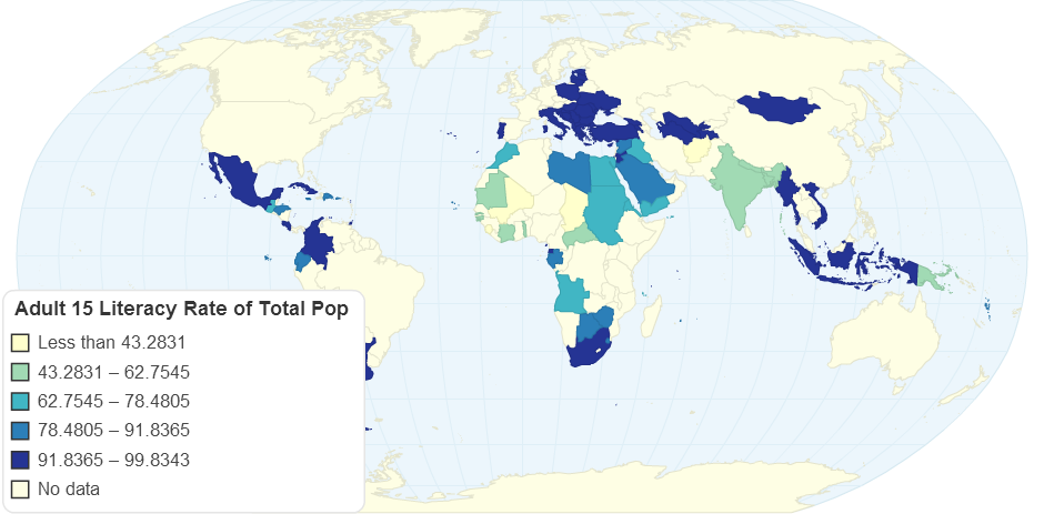 World Literacy Map: Literacy Rate Adult Total of Pe ...