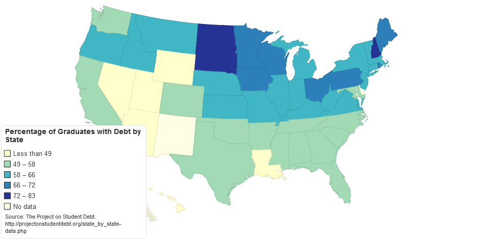 Percentage of Graduates with Debt and Average Debt of those with Loans, by State