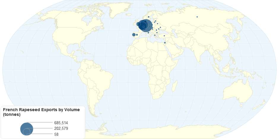 French Rapeseed Exports by Volume (tonnes). Created by www.public-ledger.com from customs data.