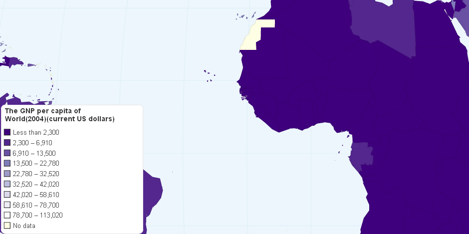 GNI per capita (formerly GNP per capita) is the gross national income, converted to U.S. and this is the world GNP per capita in 2004.(GNI)