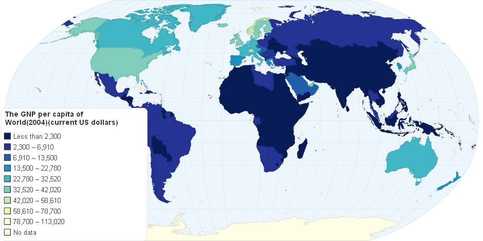 GNI per capita (formerly GNP per capita) is the gross national income, converted to U.S. dollars and this is the world GNP per capita of world in 2004