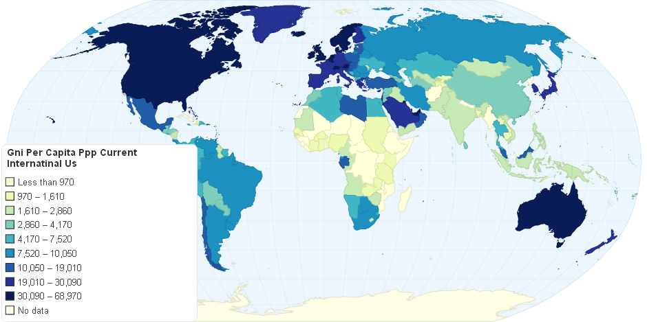 This map shows the global GNI per capita, PPP (current international US$) in 2004.