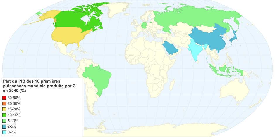 Part du PIB des 10 premières puissances mondiale produite par G en 2040 (%)
