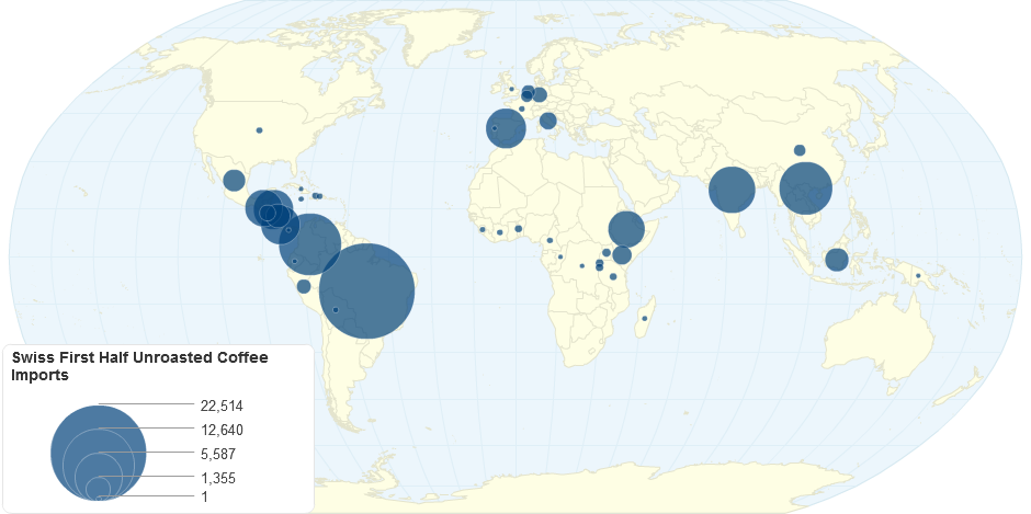 Swiss Unroasted Coffee Imports for First Half (tonnes). Created by www.public-ledger.com from customs data.