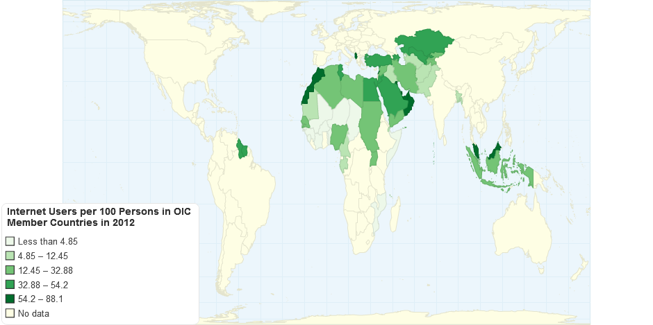 Internet Users per 100 Persons in OIC Member Countries in 2012