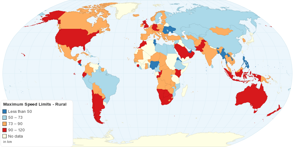 This interactive map shows maximum speed limits in rural environment.