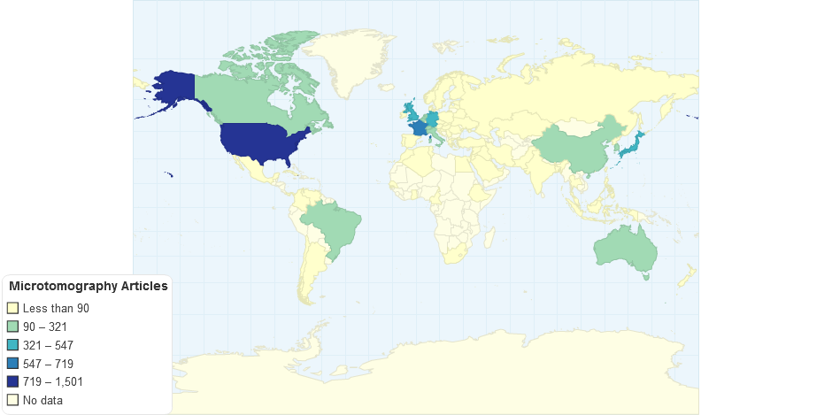 No. of scientific articles by country with microtomography keyword.