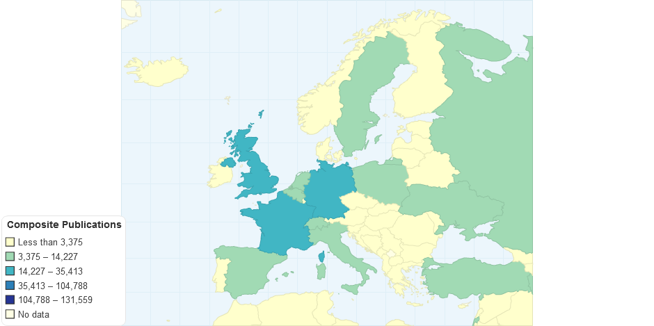 No. of scientific articles by country with composite keyword.