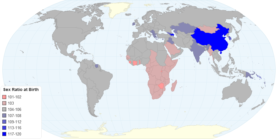 Normal Sex Ratio at Birth is around 105 Males per 100 Females. A higher ratio probably indicates prevalant sex-selective abortion practices.