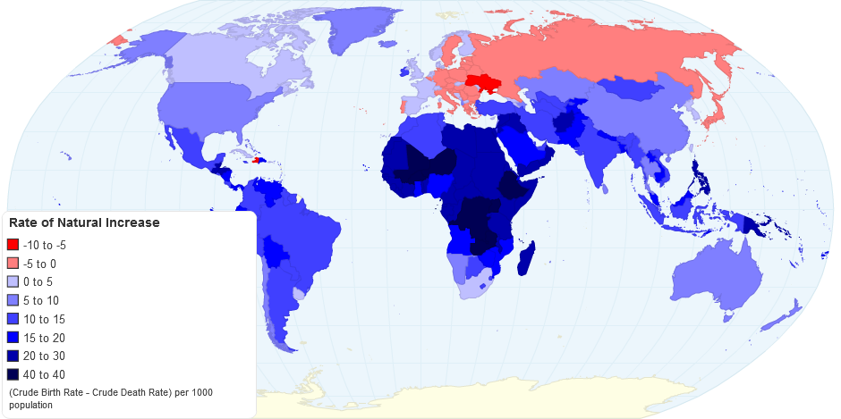 Crude Birth Rate / 1000 - Crude Death Rate / 1000. Measures the "Natural" change in population, ignoring migration