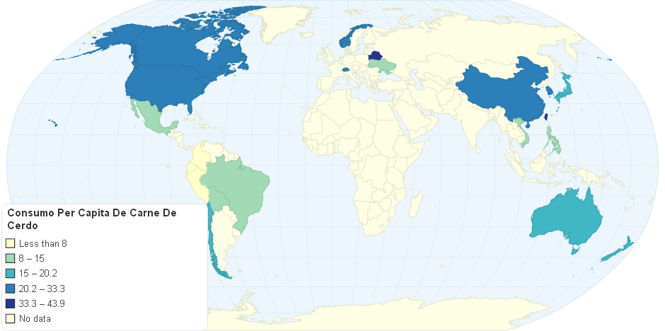 Consumo Anual Per Capita De Carne (2014, kg/hab/año)