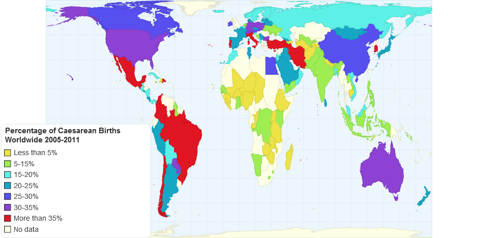 Percentage of Caesarean Births Worldwide (2005-2011)