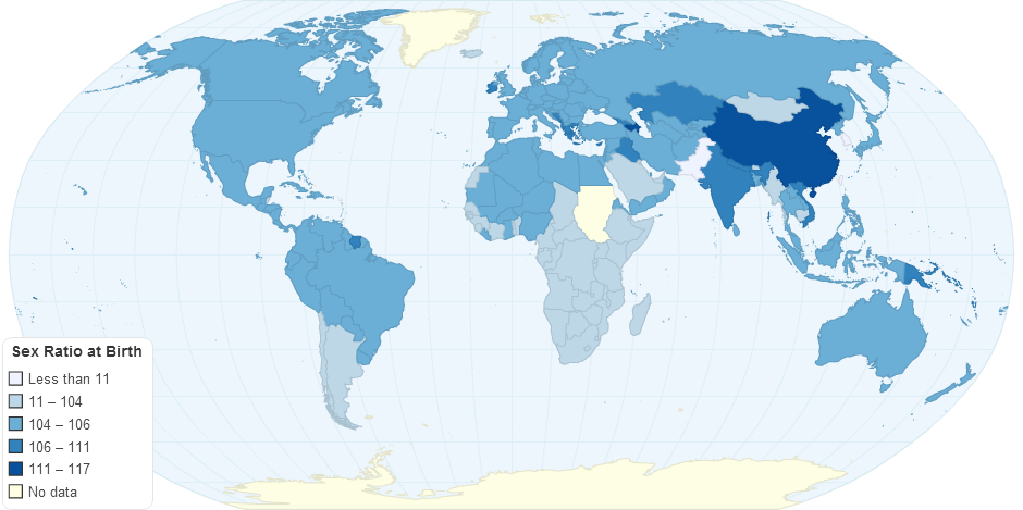 World map of sex ratio at birth