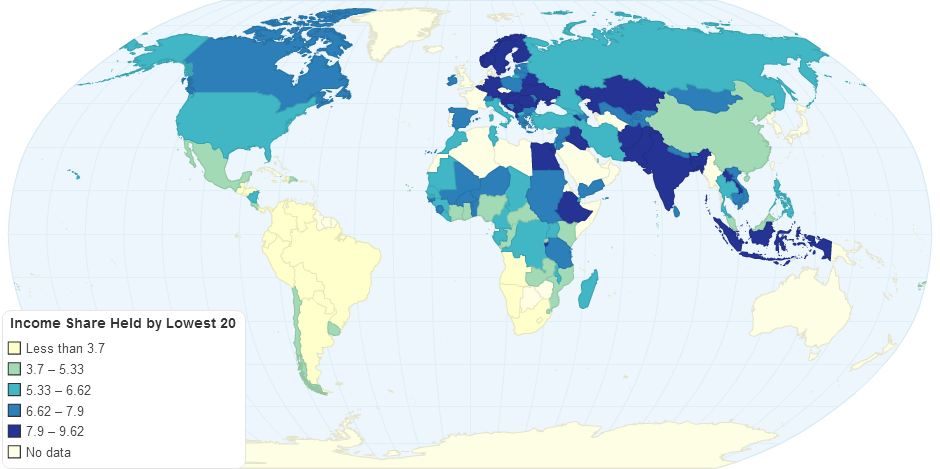 The lighter shades of blue you see on the map indicates countries that have very poor lower quintiles. This map depicts an average of data taken from the years 2000-2012.