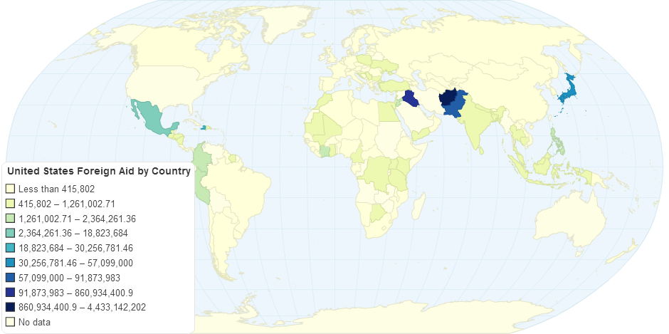 A map of which countries recieve foreign aid from the United States. Found: http://www.foreignassistance.gov/web/DataView.aspx