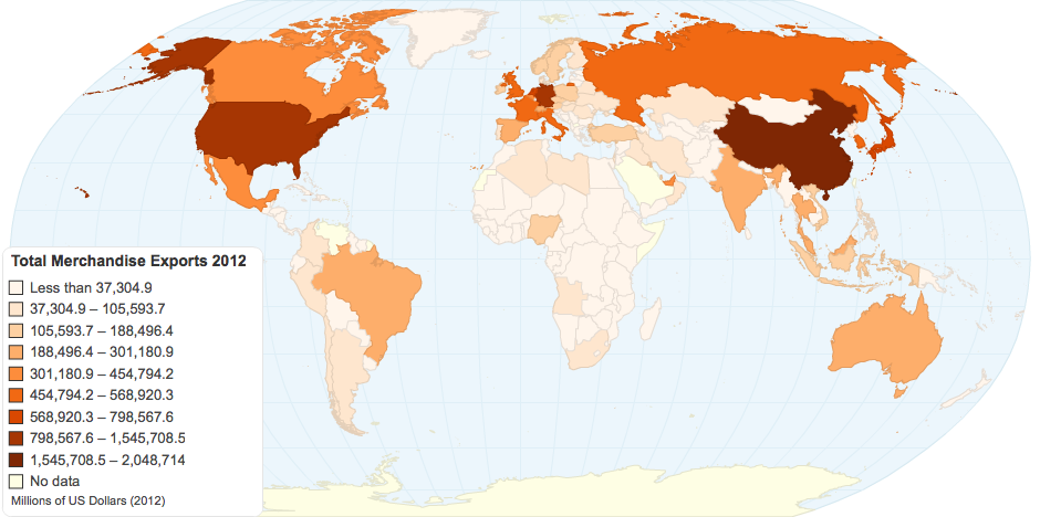 Total Merchandise Exports 2012 (Millions of US Dollars)