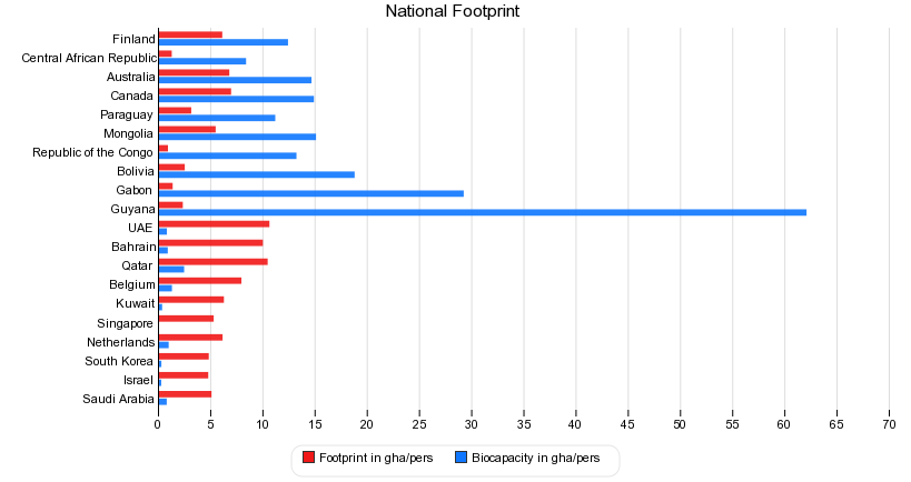 The highest and the lowest 10 countries based on the Global Footprint Network's Data