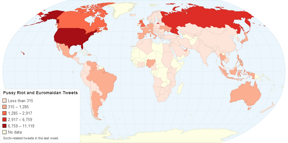 Global Sochi-related tweets mentioning Pussy Riot or Euromaidan