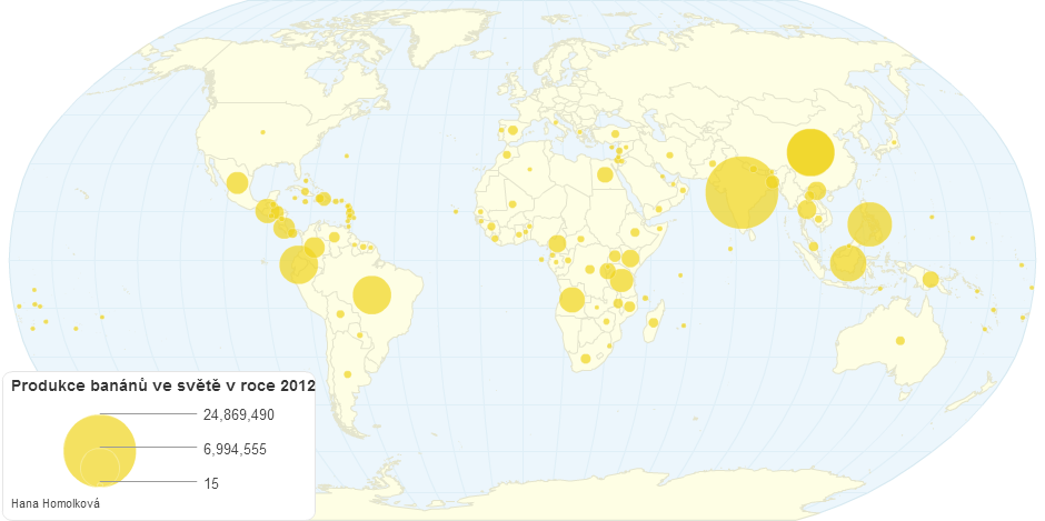 Produkce banánů v roce 2012 ve světě (BŽ)