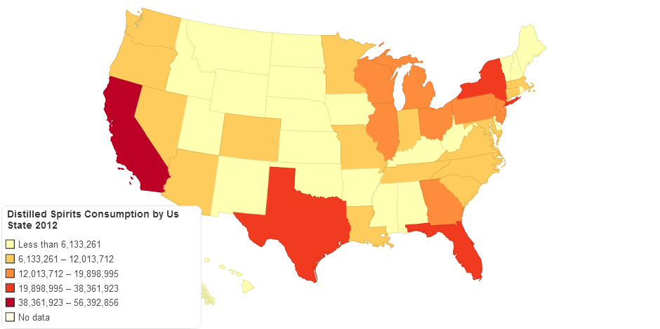 Distilled Spirits Consumption by Us State 2012