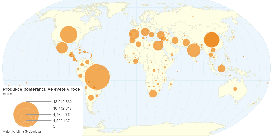 Produkce pomerančů ve světě v roce 2013 (v tunách)
