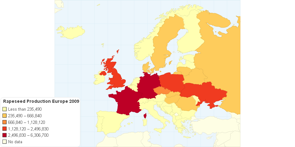 Rapeseed production in europe (tonnes, 2009)