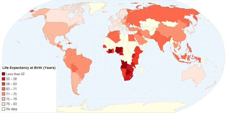 A map showing life expectancy on a global scale