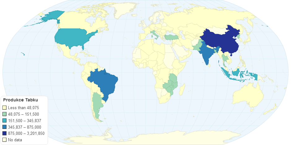 Produkce tabaku ve svete (tuny)