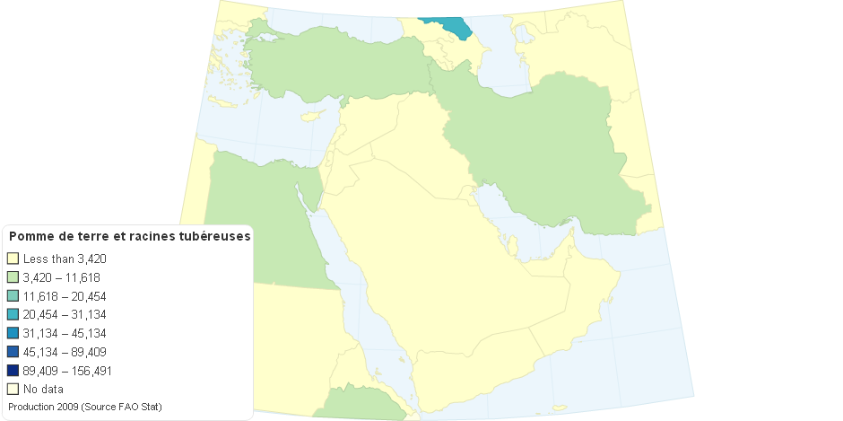 Middle East and Norther Africa Potato and Tuber root production - 2009 - MT - FAO Stat