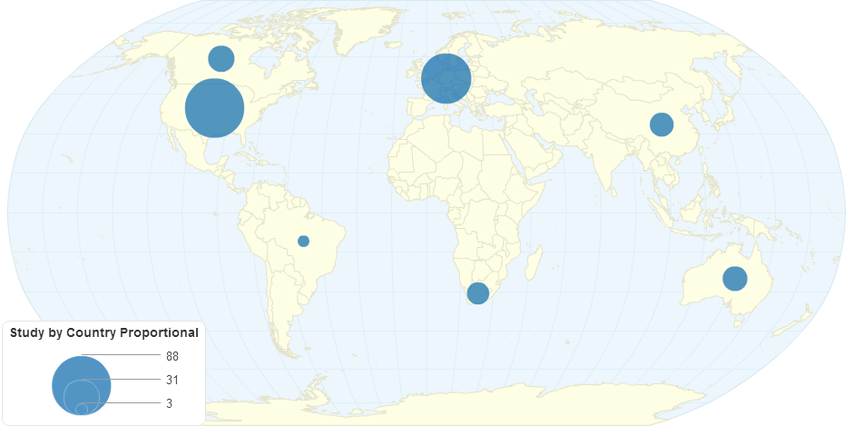 Use of Proportional objects to describe the number of studies relating to the review of research ethics review by region.