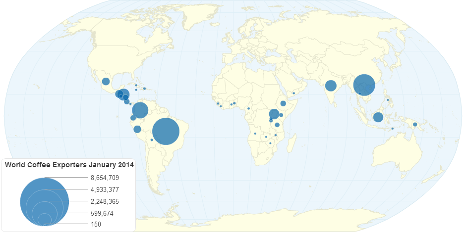 Visualized World Coffee Exporters Statistics, January 2014