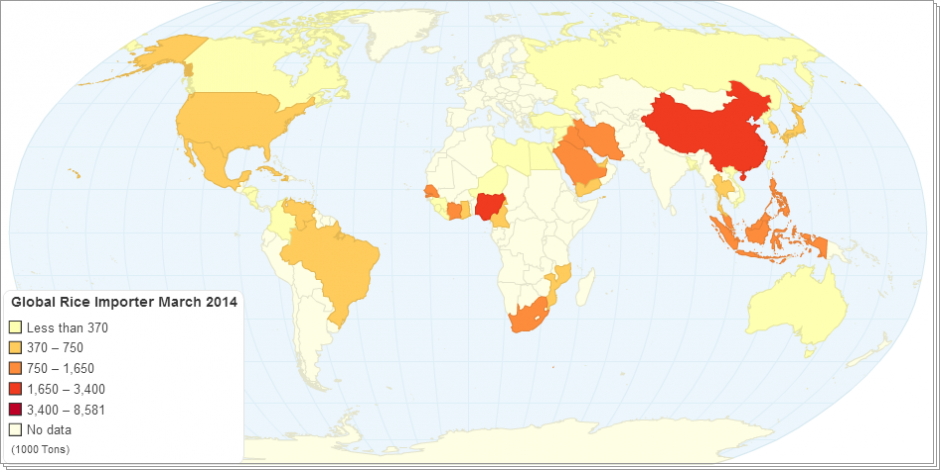 Global rice statistics, import countries in March 2014