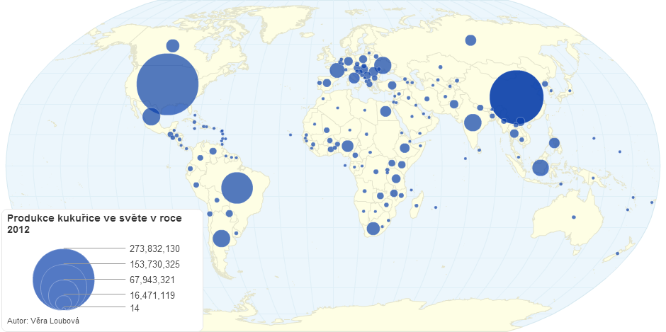Celková produkce kukuÅ™ice ve svÄ›tÄ›. NejvÄ›tším producentem je USA a ÄŒína.