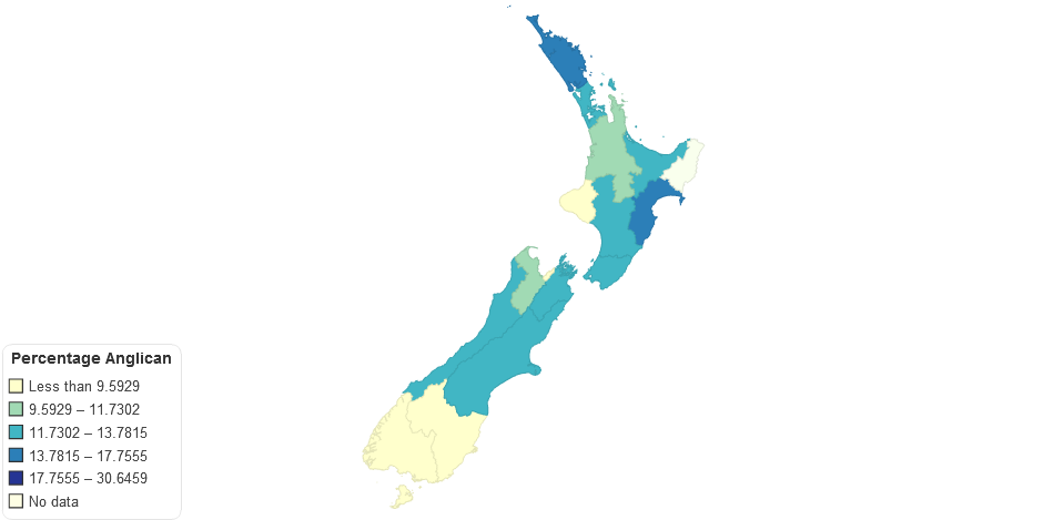 Percentage of the population that identified themselves as Anglican in the 2006 Census