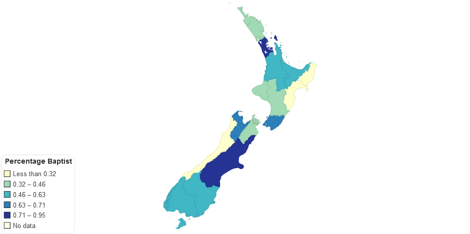Percentage of the population indicating Baptist in the New Zealand Census 2006