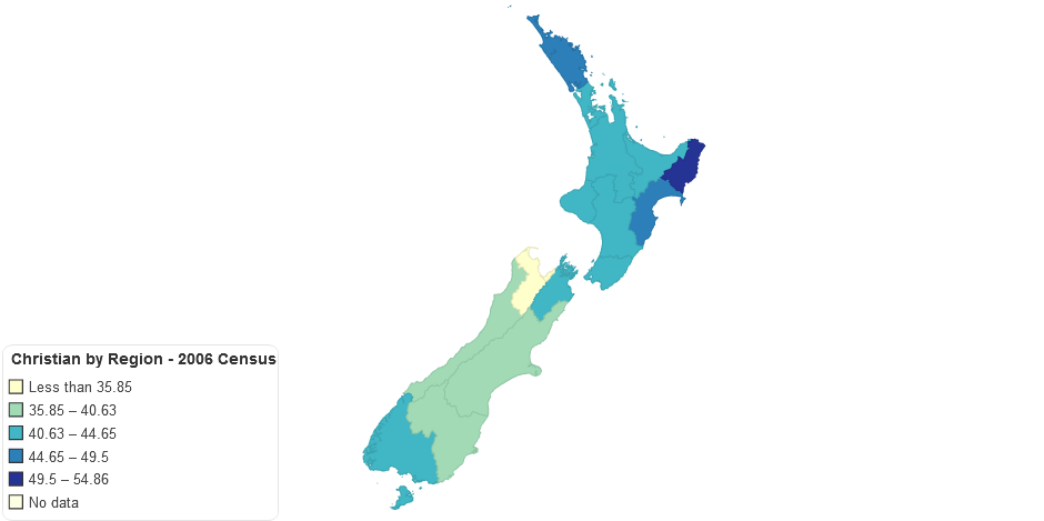 Percentage of the total population that indicated "Christian" in the New Zealand Census 2006