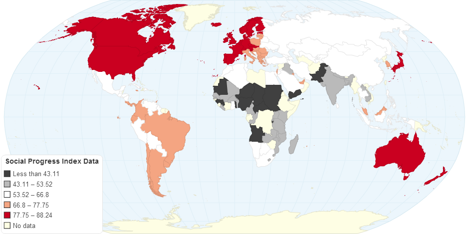 Visualization of Social Progress Index data from Social Progress Imperative