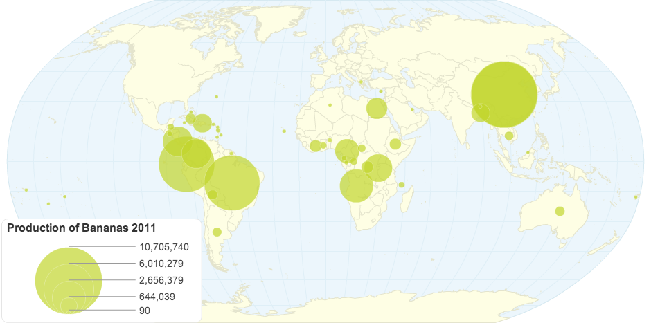 Produkce banánů ve světě v roce 2013 (v tunách)