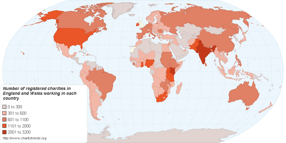 A list of where charities registered in England and Wales work around the globe.