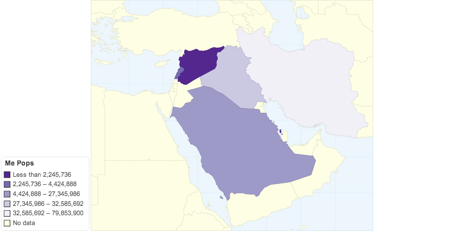Population for Syria, Iraq, Saudi Arabia, Bahrain, Lebanon, and Iran