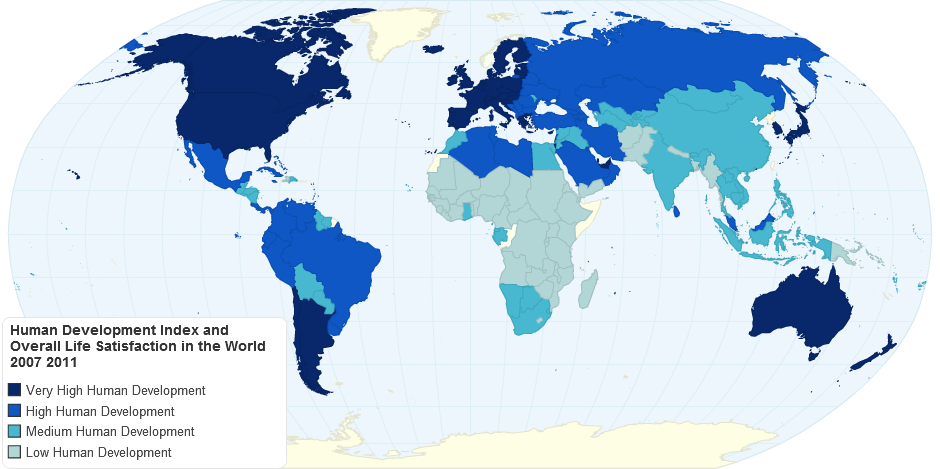 Human Development Index and Overall Life Satisfaction in the World, 2007-2011, United Nations Development Programme, Human Development Report 2013, viewed 18th May, 2014.