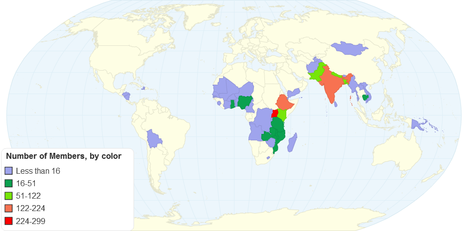 This map represents the members of the SecureNutrition community that live in World Bank IDA and Blend-lending countries (1,539 people in total). The International Development Association (IDA) is a part of the World Bank that helps the world’s poorest countries. Blend is a category of countries that are eligible for IDA resources on the basis of per capita income, but also have limited creditworthiness to borrow from the International Bank for Reconstruction and Development.