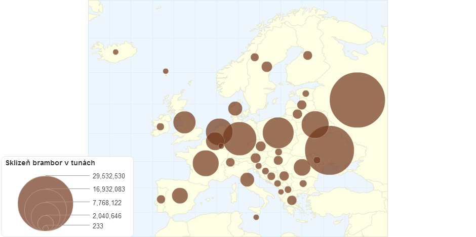 Sklizeň brambor v Evropě v tunách