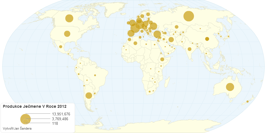 Světová produkce ječmene za rok 2014