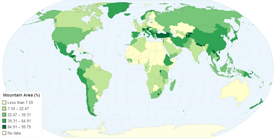 Alphabetical List of Countries and Kapos Classes based on Gtopo30 and STRM-Terrain Model