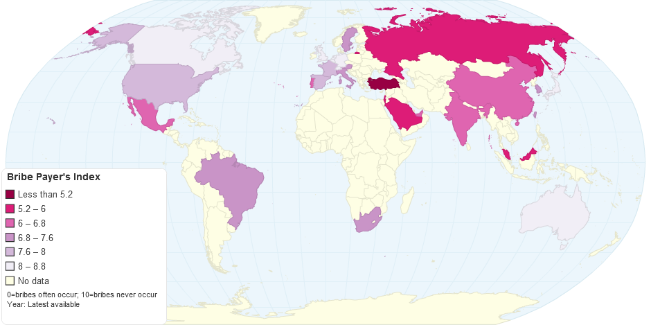 The Bribe Payer's Index (BPI) measures the tendency of firms from top exporting countries to pay bribes or make undocumented payments while conducting business abroad.