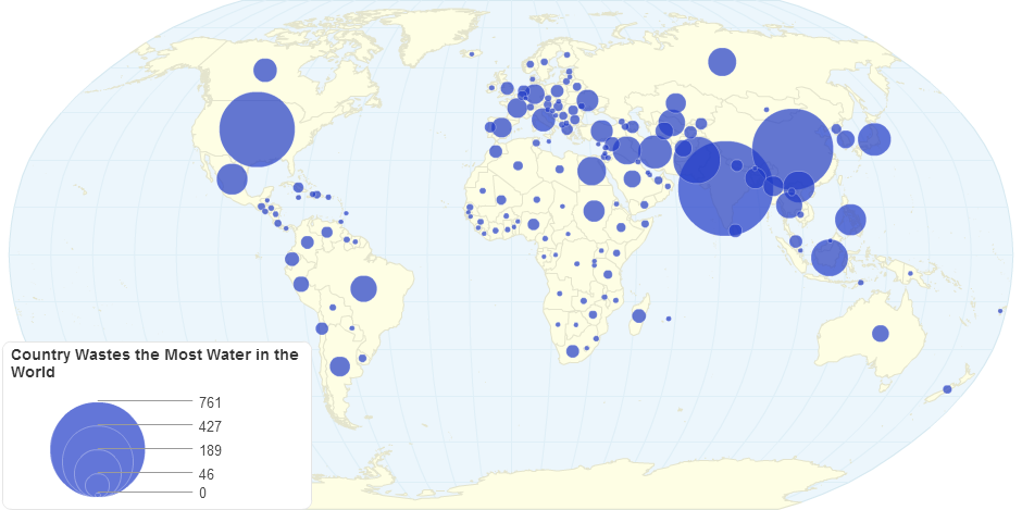 This map shows total water withdrawal for agricultural, industrial and municipal purposes by country. Water withdrawal is the quantity of water removed from available sources for use in any purpose. Water drawn-off is not necessarily entirely consumed and some portion may be returned for further use downstream. World total water withdrawal: ~3905.86 km³/year