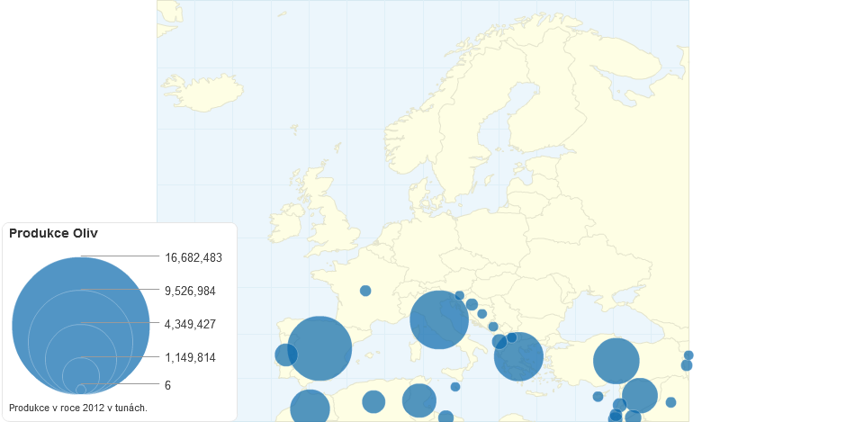 Produkce Oliv v EvropÄ› v roce 2012 (t)