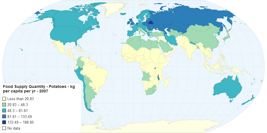 Potato supply quantity according to the Food and Agriculture Organization of the United Nations (FAOSTAT) for the year 2007.