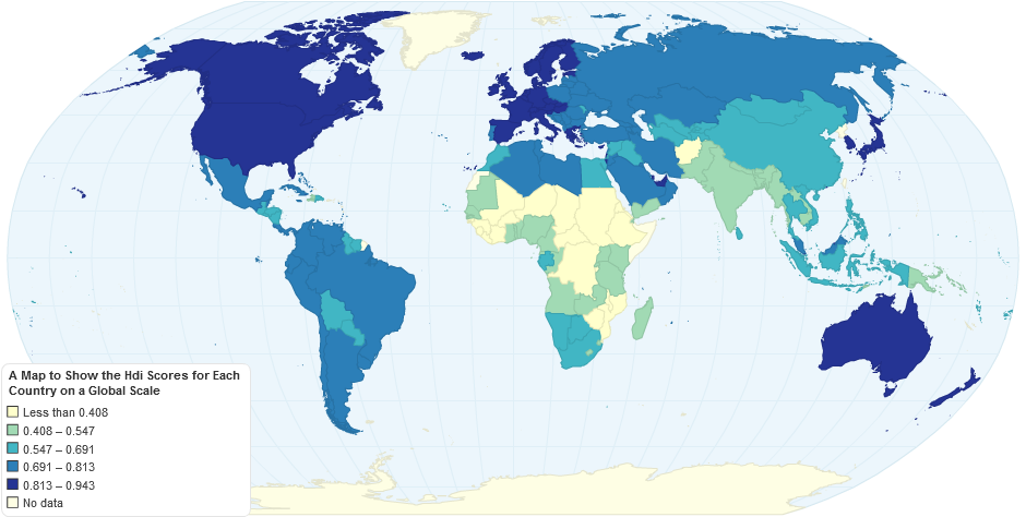 A Map to Show the HDI Scores for Each Country on a Global Scale
